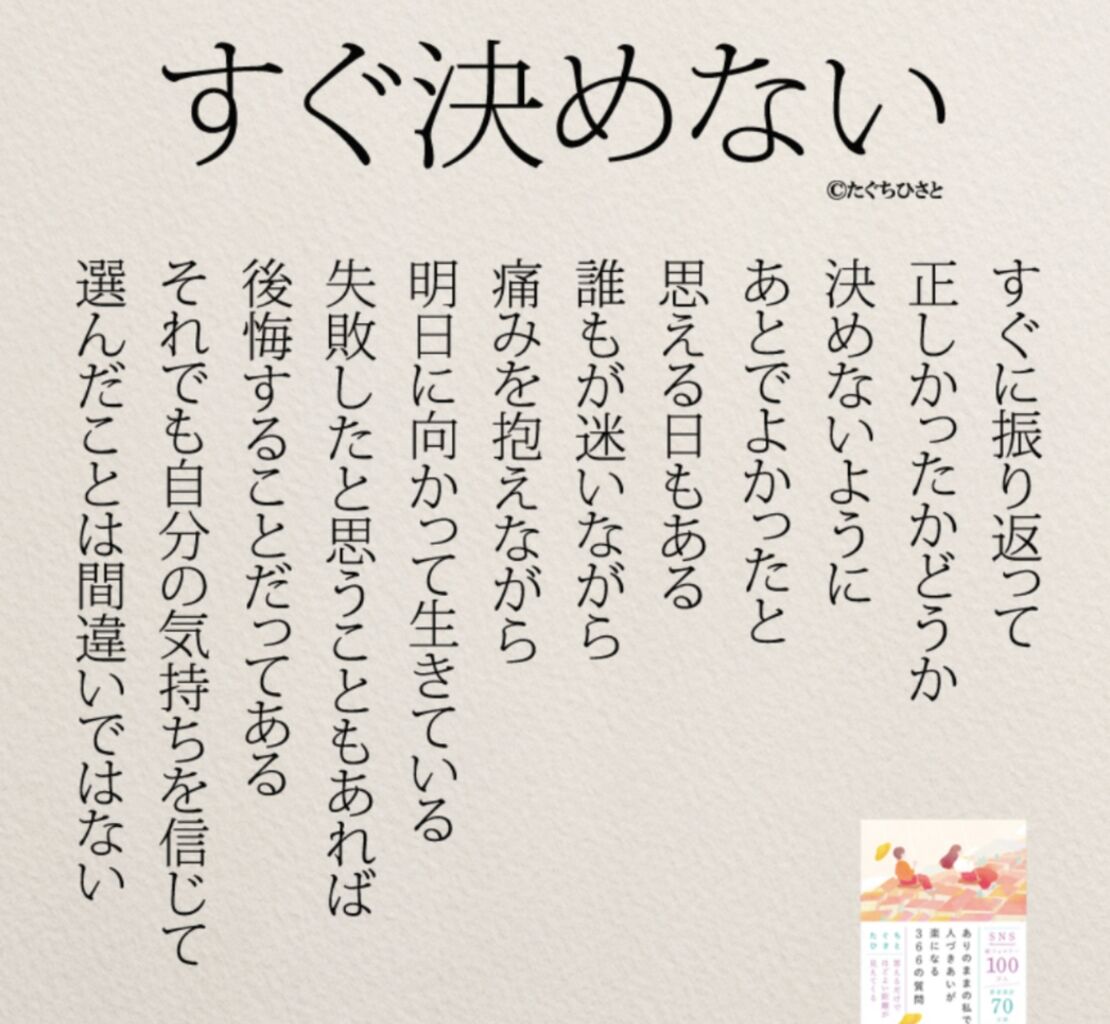 その決断は正しかったんだと自分自身を
